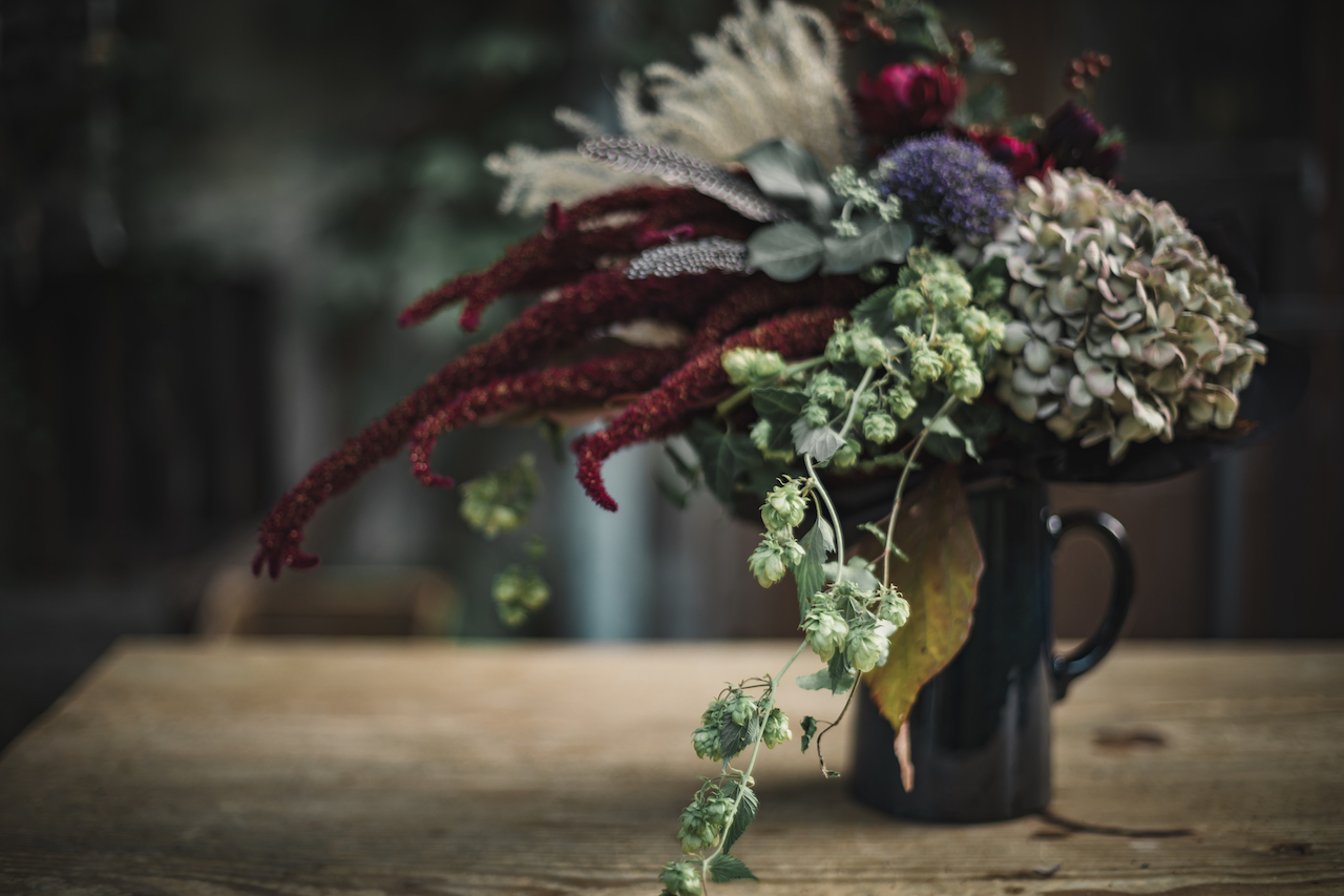Danach folgt die Idee. Für mich ist die Denke für solche Aufträge wie Meditieren. Ich schliesse die Augen und erstelle ein virtuelles Mindmap. Alles was mir in den Sinn kommt zum Thema Herbst, schiesst dabei hindurch. Es sind Farben, Materialien, Oberflächen, Trends, Bücher, Natur, Blumen und dieses Bild in meinem Kopf wie ich mir eine Herbsttafel vorstelle.