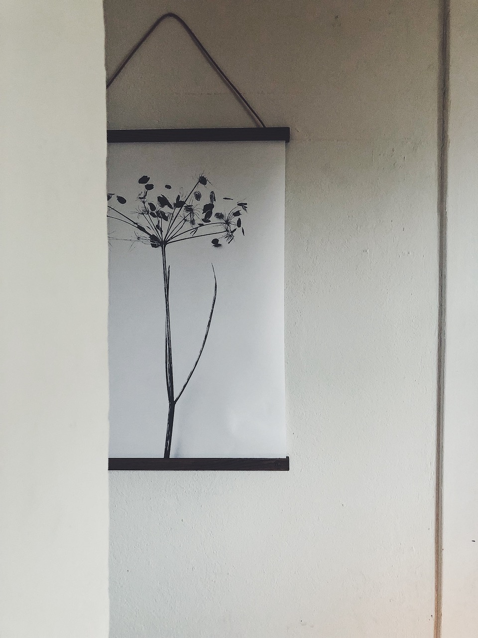 Frei und wild, weil anders als üblich finde ich die Bilderleisten von niste.ch. Weil wie gesagt Loslassen Raum gibt. Schlicht und doch ausdrucksstark lässt sich die Leiste mit einem Lederband aufhängen. Das Pusteblumen-Bild findest du hier.