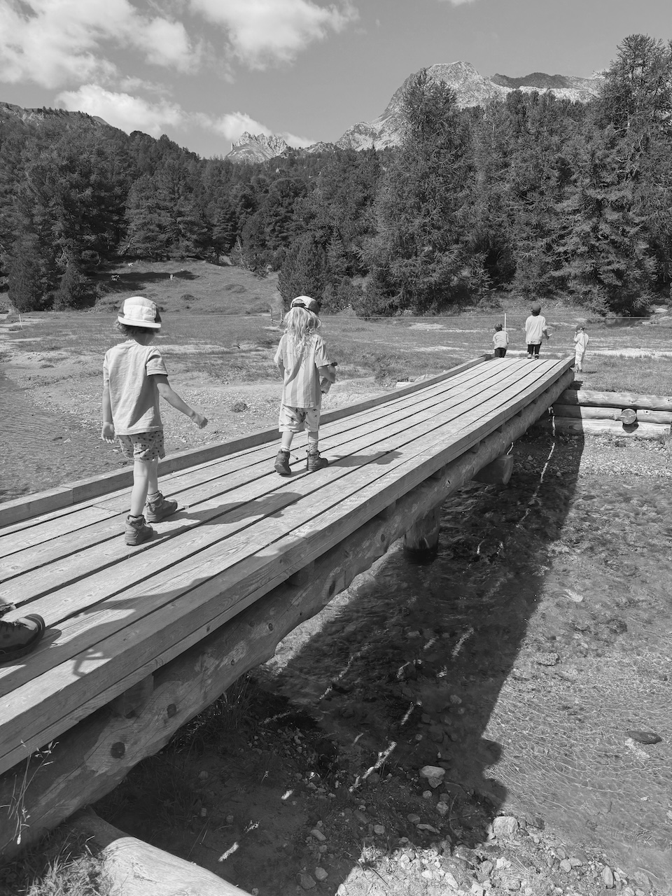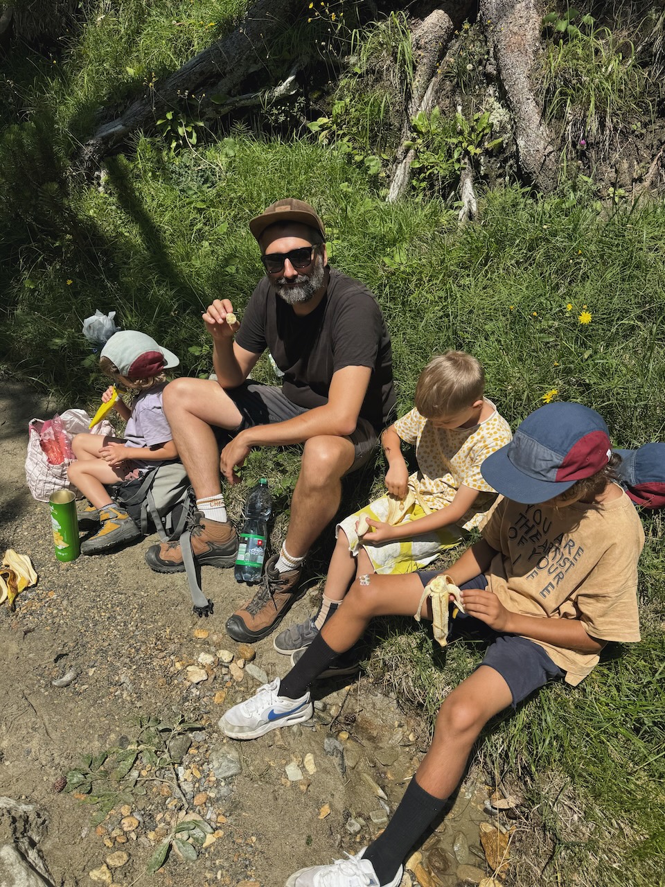 Wow, was soll ich sagen. Der Aufstieg zur Hütte war zauberhaft. Die Kinder sind wie kleine Steinböcke über Stock und Stein hochgewandert. Der Weg war gut zu bewältigen, auch herausfordernd aufgrund der Höhenmetern, die wir in den Beinen und auf den Schultern spürten - dennoch wunderschön. Flora und Fauna ist hier nochmals anders. Unzählige Schmetterlinge, eine schöne Aussicht und ein spannender Weg über Flüsse, Brücken und Steine.