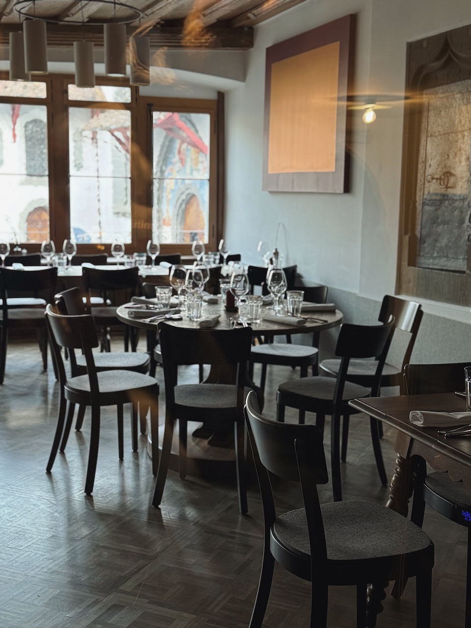 Danach gings mit wenigen Bushaltestellen zurück ins Hotel, weil ein Stock darunter sich das Restaurant Schlüssel befindet. Wie wir uns auf dieses gemeinsame Abendessen freuten. Wir geniessen und essen beide gerne und entschieden uns kurzerhand für das Überraschungs-Dinner bestehend aus Amuse Bouche und vier darauffolgenden Gängen.