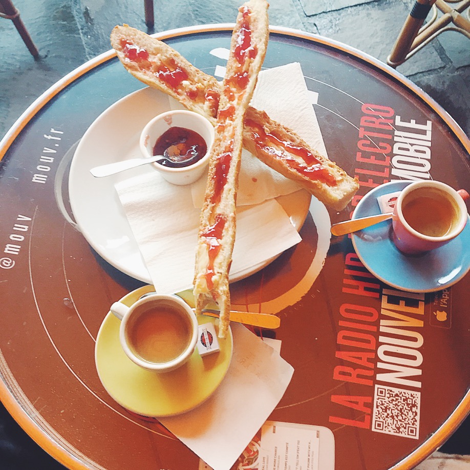 In den typischen Bistrots mit einem typischen Frühstück à la parisienne starteten wir in den Tag - stundenlang sind wir unter den Wärmestrahlern auf den gegen die Strasse gerichteten Stühlen gesessen und haben die vorbei flanierenden Leute beobachtet.