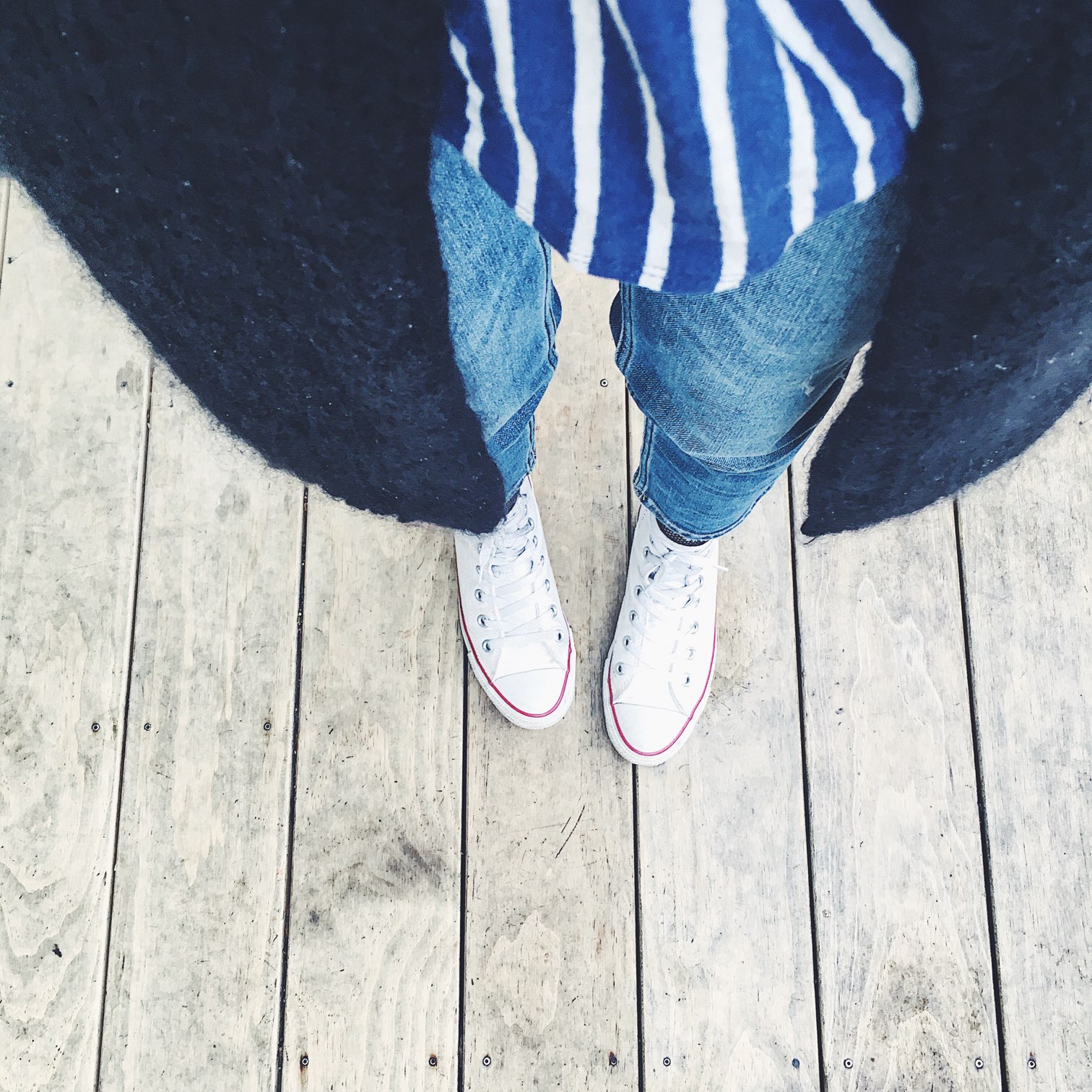 Ich liebe den Look. Bis die Temperaturen in die Gänge kommen, ist ein Cardigan eine gute Kombination. Ruffle-Shirts sind diesen Frühling und Sommer das grosse Thema und der Matrosenlook hats mir besonders angetan.